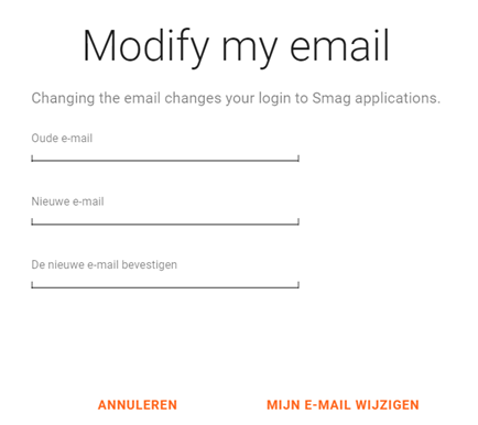 Je kunt het e-mailadres van je SMAG account wijzigen, waardoor je login voor al je SMAG applicaties verandert.
